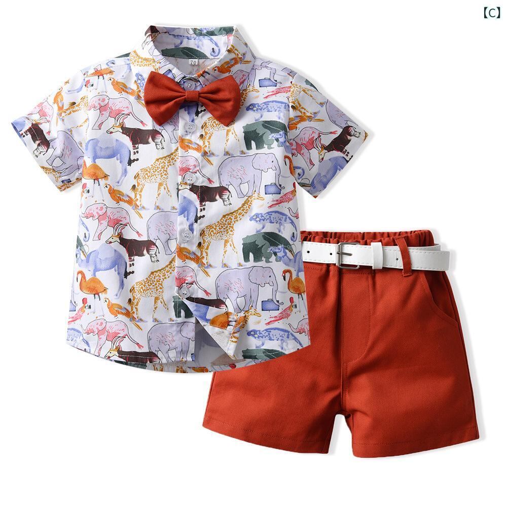 シャツ キッズ 男の子 半袖シャツ ショートパンツ 2点セット 子供服 上下セット 綿 動物柄 恐竜柄 花柄 プリント柄 春夏 70 80 90 100 110 120 130cm