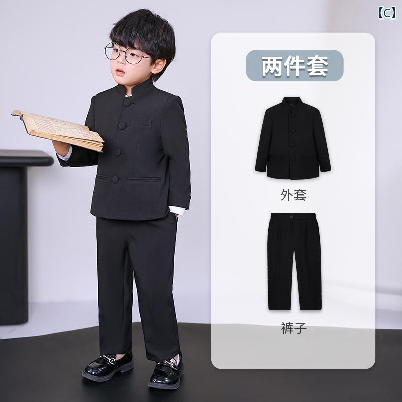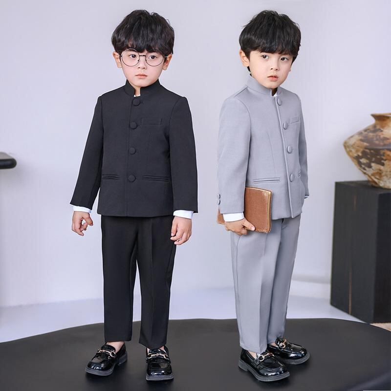 子供用フォーマルスーツ 男の子 中山装 春秋 立襟 ポリエステル 発表会 演奏会 結婚式 卒業式 入学式 3歳 4歳 5歳 6歳 7歳 8歳 グレー ブラック