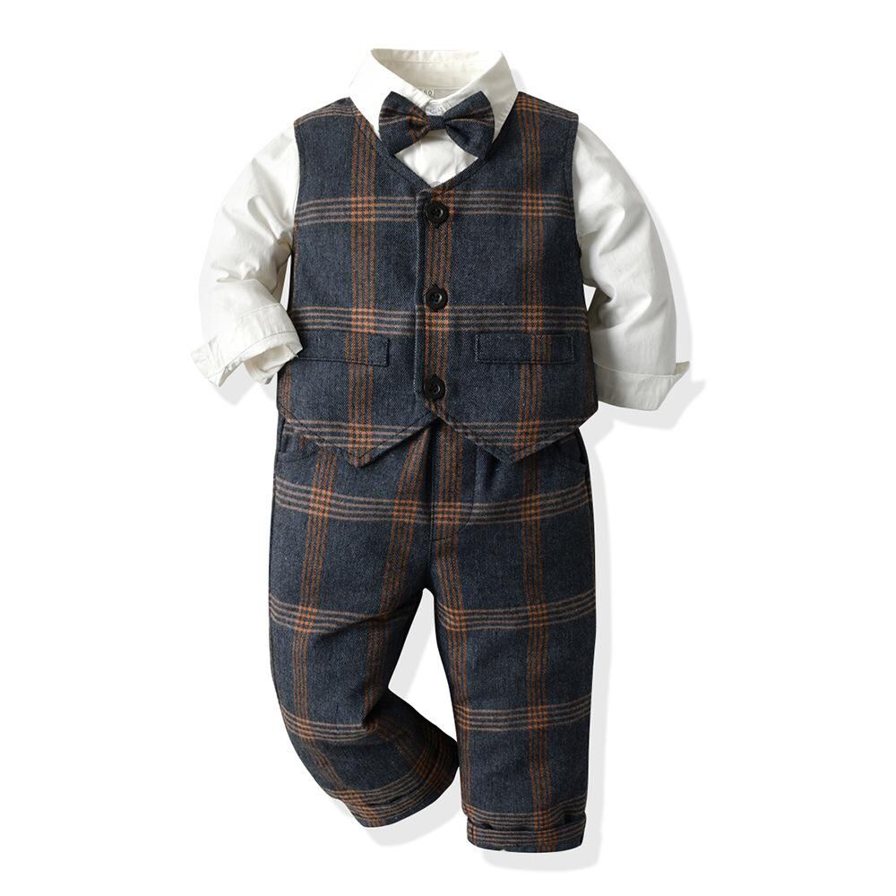 子供用フォーマルスーツ 春秋 男の子用 格子柄 ベスト付き 3点セット 長袖シャツ 長ズボン 上下セット おしゃれ 紳士風 入園式 卒園式 結婚式 七五三 発表会 記念日 誕生日 お祝い 70 80 90 100 110 120 130 140 150