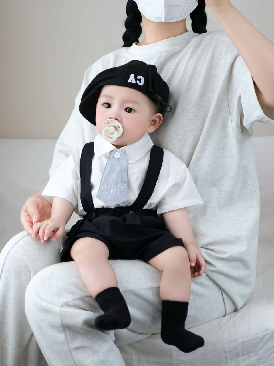 ベビー服 男の子 フォーマル 半袖シャツ サスペンダー付きパンツ 上下セット 綿100% 赤ちゃん 幼児 子供服 学院風 春夏 結婚式 誕生日 記念日