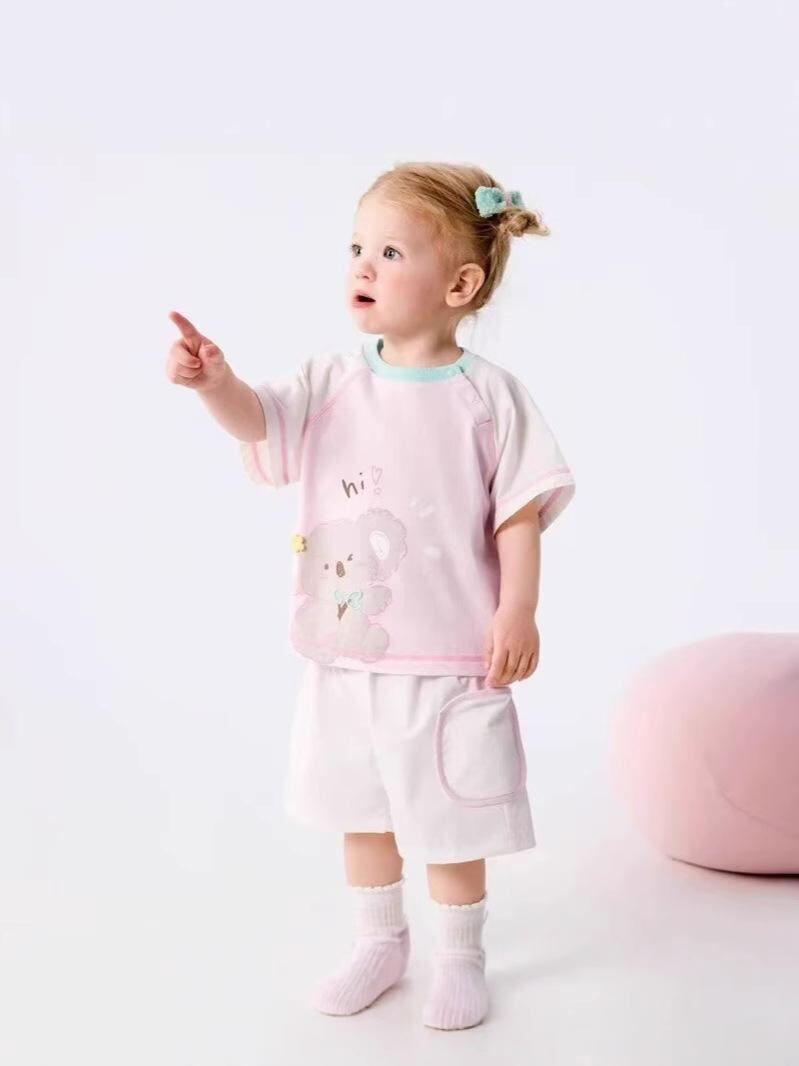 キッズ 子供服 半袖 短パン 上下セット 薄手 綿100% かわいい カートゥーン柄 夏物 普段着 部屋着 ピンク系 ホワイト