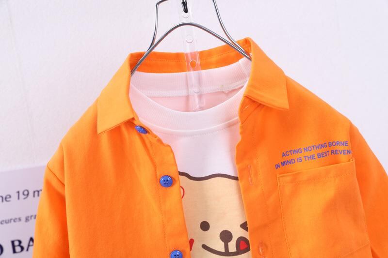 キッズ 子供服 上下セット 3点セット 春秋 長袖シャツ ハーフパンツ ジャケット コットン かわいい 普段着 部屋着 イエロー オレンジ系