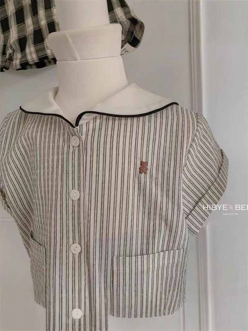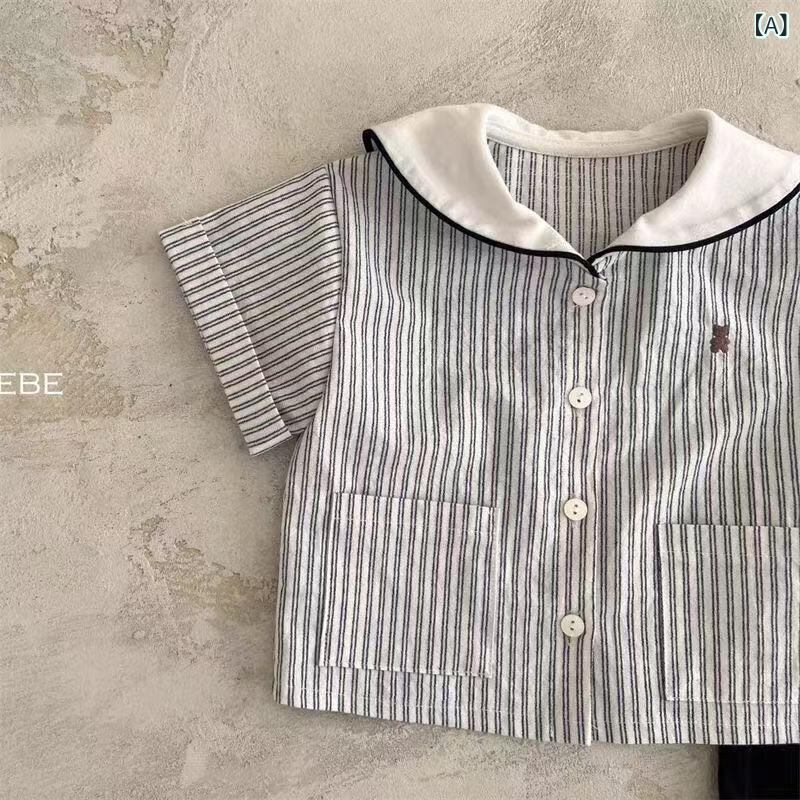 子供服 上下セット 男女兼用 半袖 ストライプ シャツ ハーフパンツ 綿100% 薄手 韓国子供服 春夏 海軍風 かわいい レトロ ボーイズ ガールズ 80cm 90cm 100cm 110cm 120cm