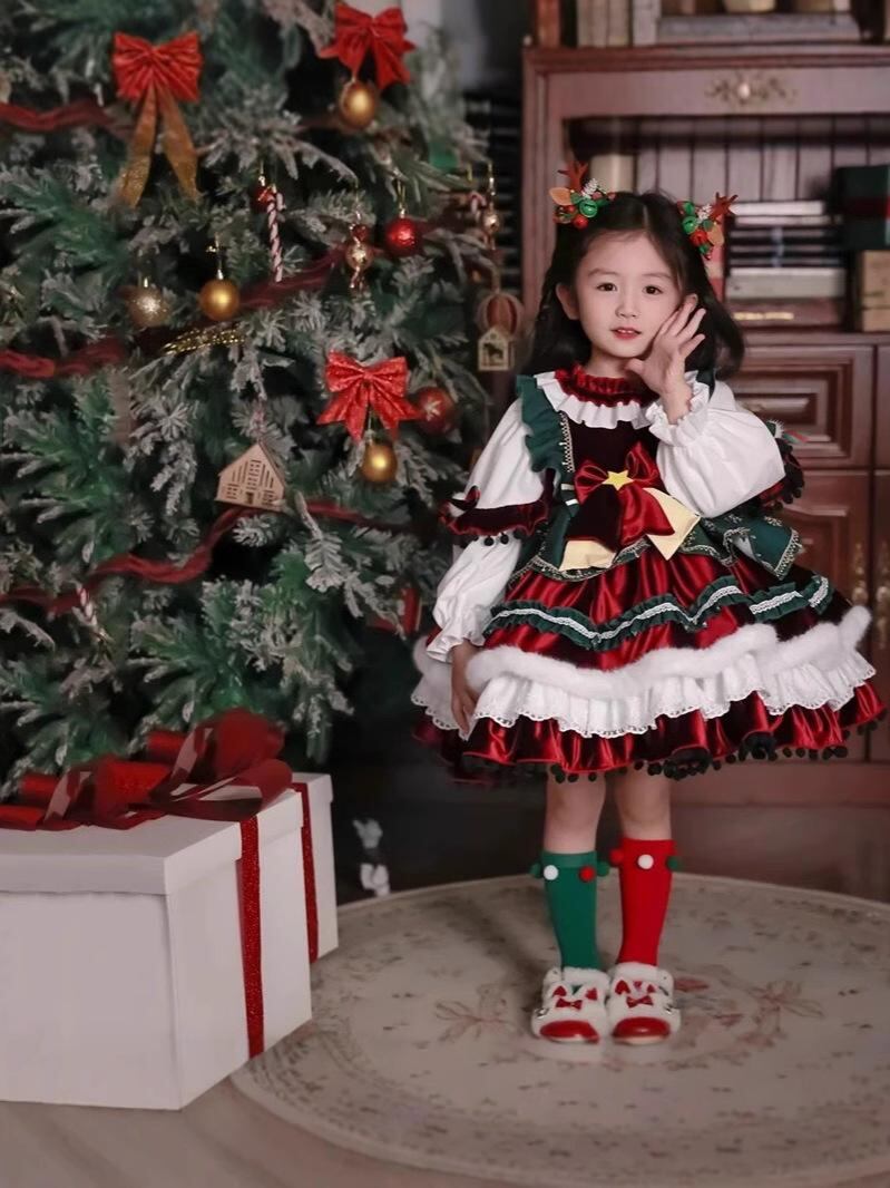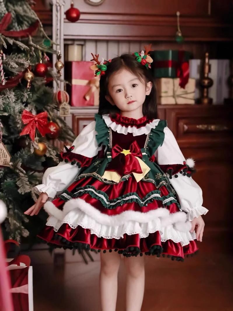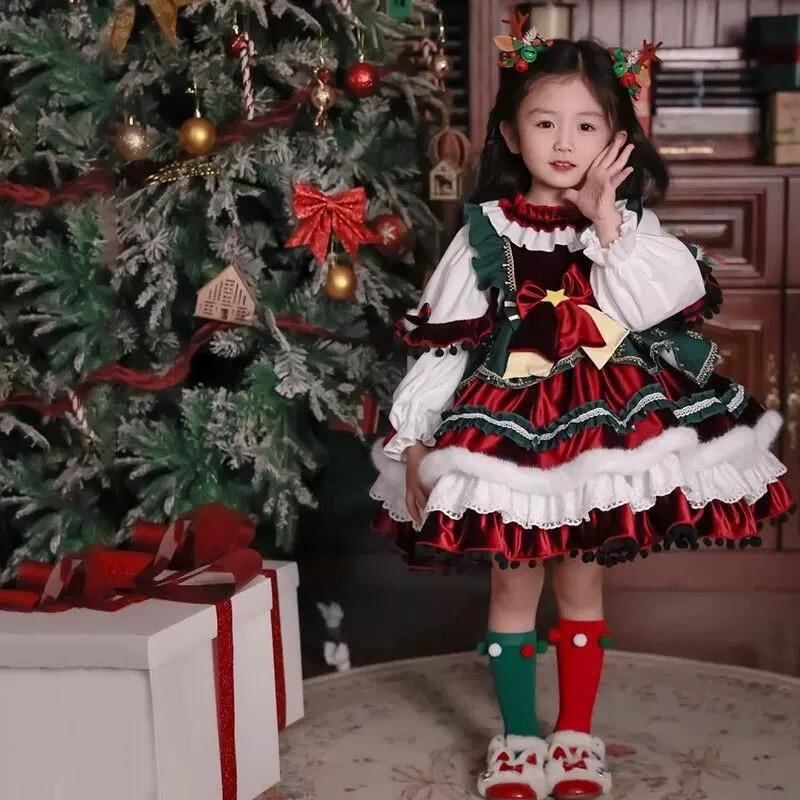 子供用 クリスマス ロリータ プリンセス ワンピース 秋冬 裏起毛 チュール スカート ベビー 新年 ガールズ ドレス コスチューム