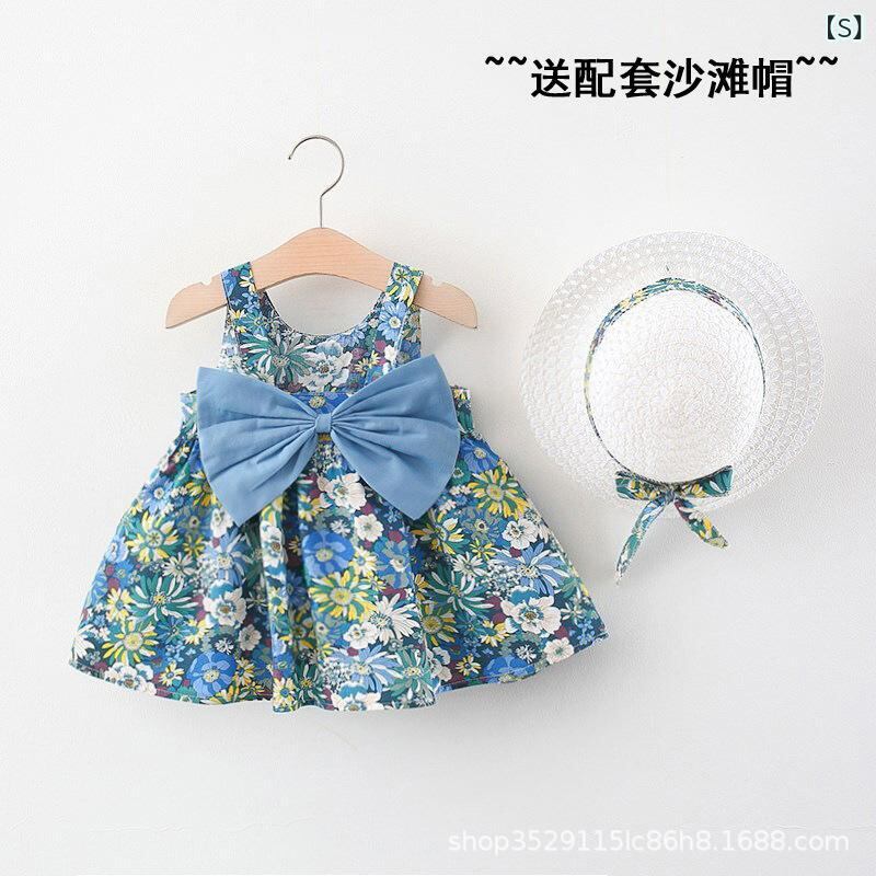 ワンピース キッズ 夏服 子供服 スカート ベビー 花柄 帽子付き 綿 かわいい おしゃれ チュール 73cm 80cm 90cm 100cm 110cm 120cm