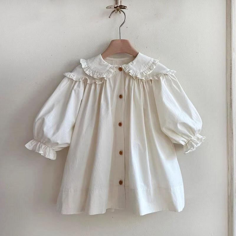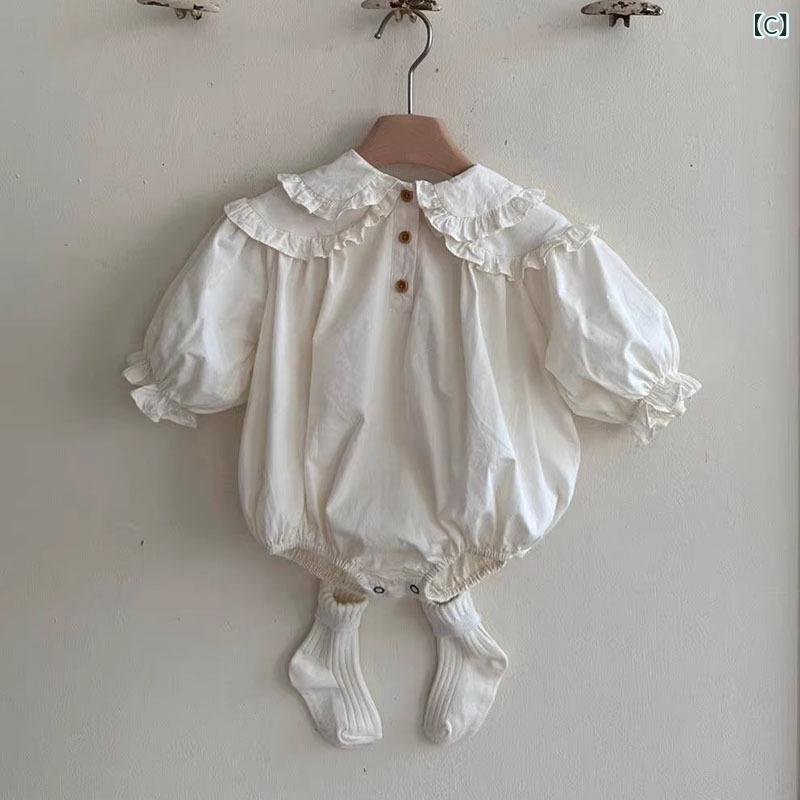 ワンピース 女の子 春秋 かわいい 長袖 パフスリーブ 子供 ベビー ドールワンピース コットン ゆったり プリンセススカート ガールズ 白 ピンク