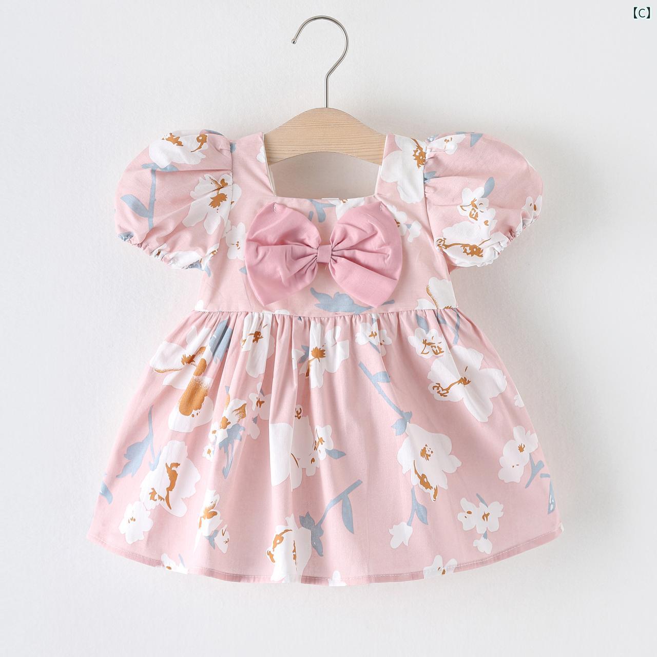 ワンピース ベビー キッズ 愛心柄 プリンセス スカート 1歳 2歳 3歳 子供服 夏物 赤 黒 ピンク系 青系 黄色系 紫色系 かわいい 綿