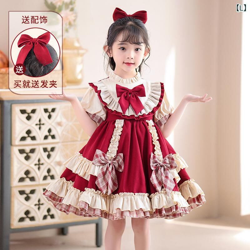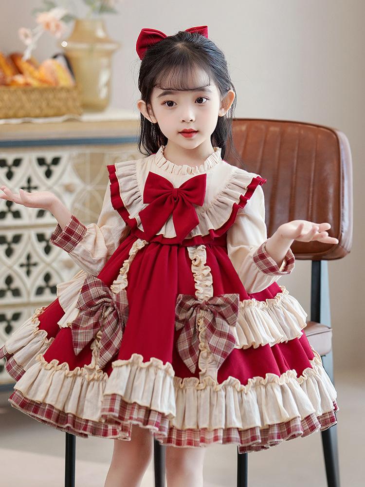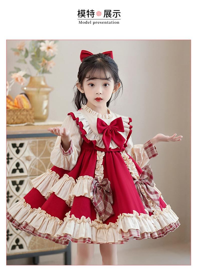 ワンピース キッズ 女の子 子供 ロリータ 春秋 プリンセス チュール 膝丈 発表会 結婚式 パーティー 赤 ピンク 90 100 110 120 130 140 150 160