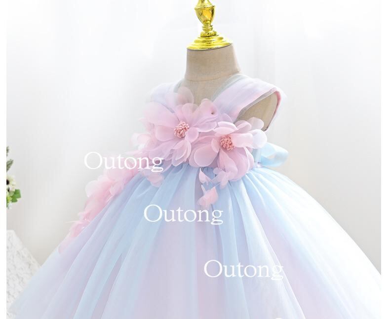 ワンピース キッズ 女の子 子供 ベビー プリンセス スカート コットン ノースリーブ チュールスカート 虹色 花柄 春夏 パープル かわいい