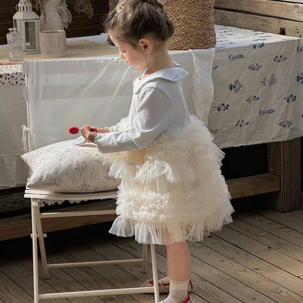 ワンピース 女の子 春秋 長袖 チュールスカート 子供服 チュール ドット柄 水玉模様 リボン かわいい おしゃれ ガーリー プリンセス