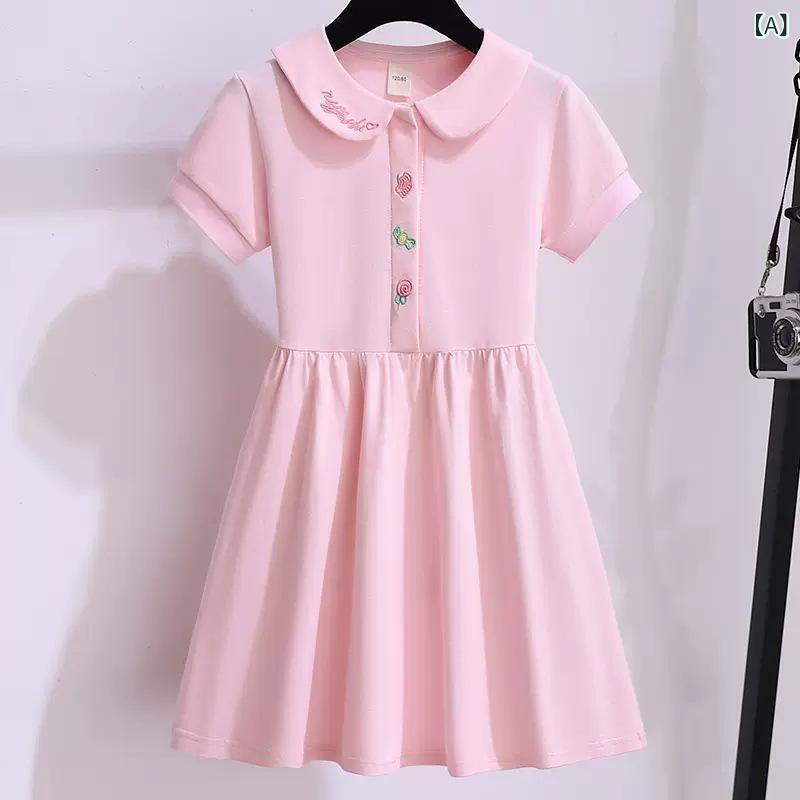 ワンピース キッズ 女の子 子供 半袖 Aラインスカート コットン ピンク かわいい 通学 普段使い