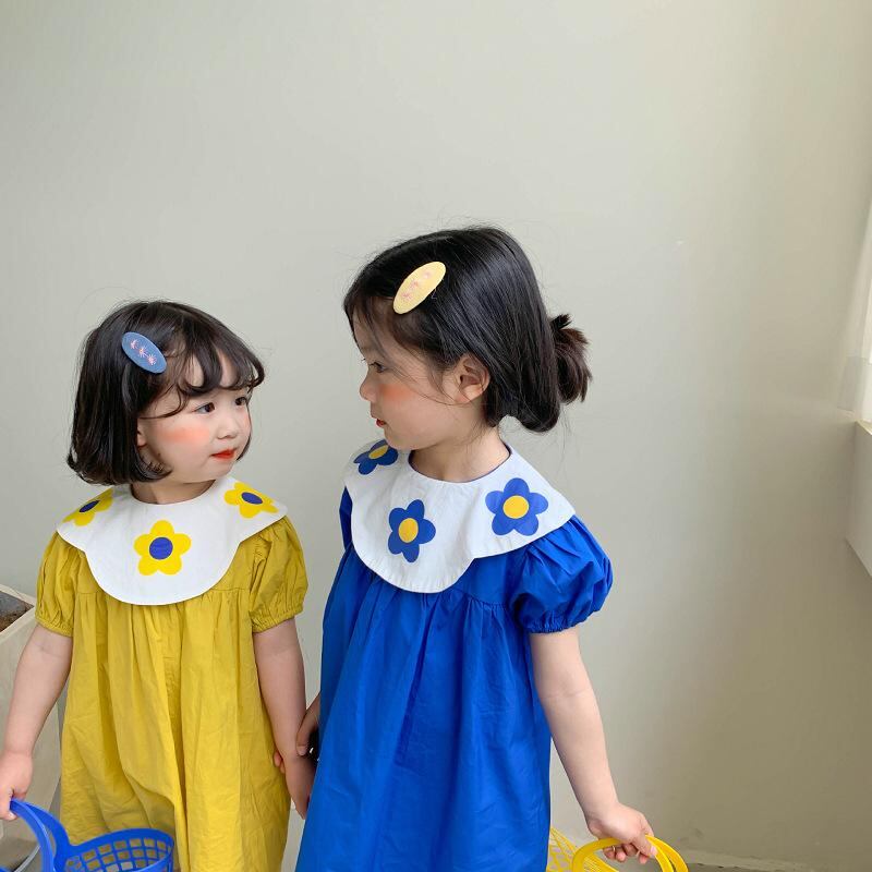 ワンピース キッズ 女の子 半袖 子供服 プリンセス スカート 卵の花柄 かわいい 夏物 綿100% 宝ブルー イエロー