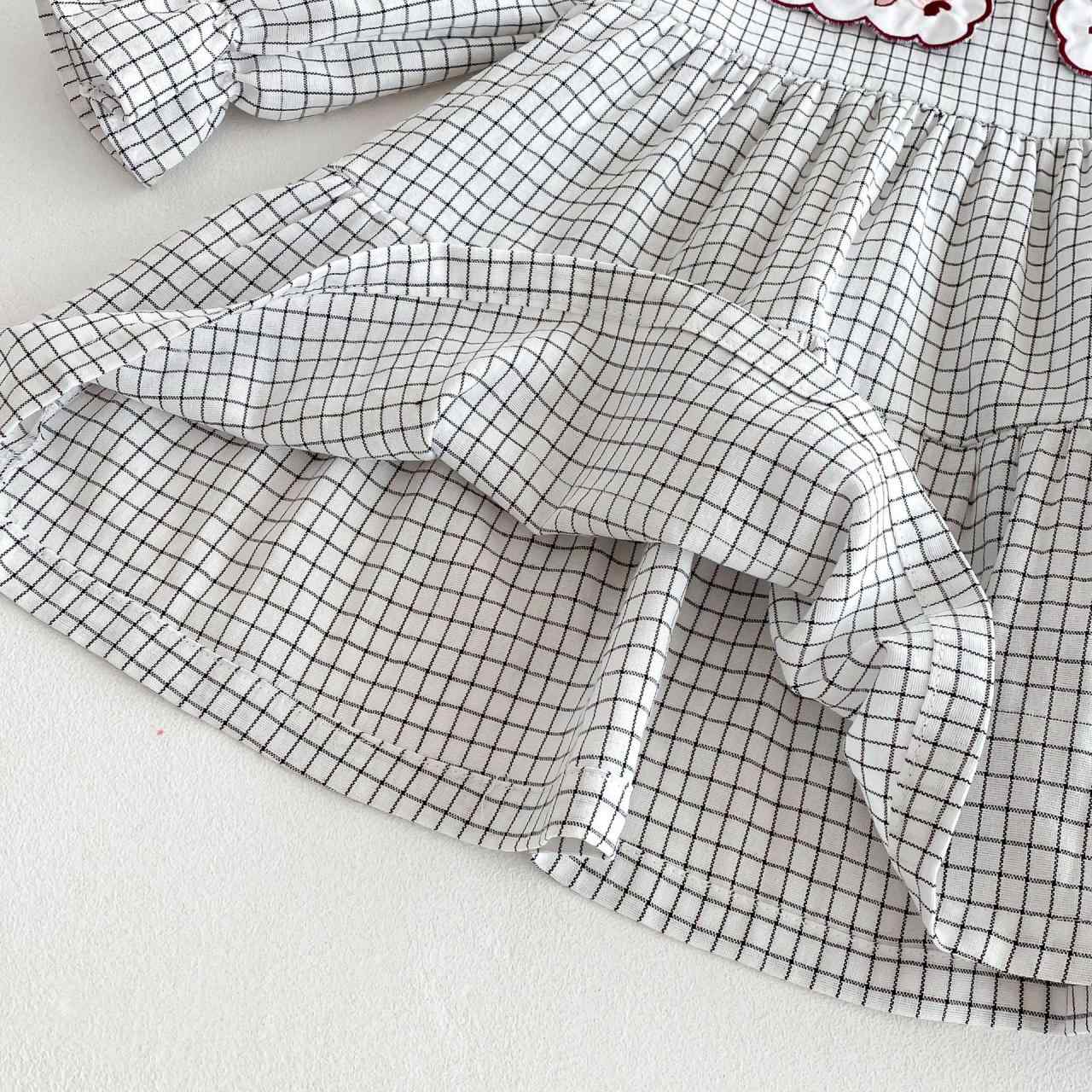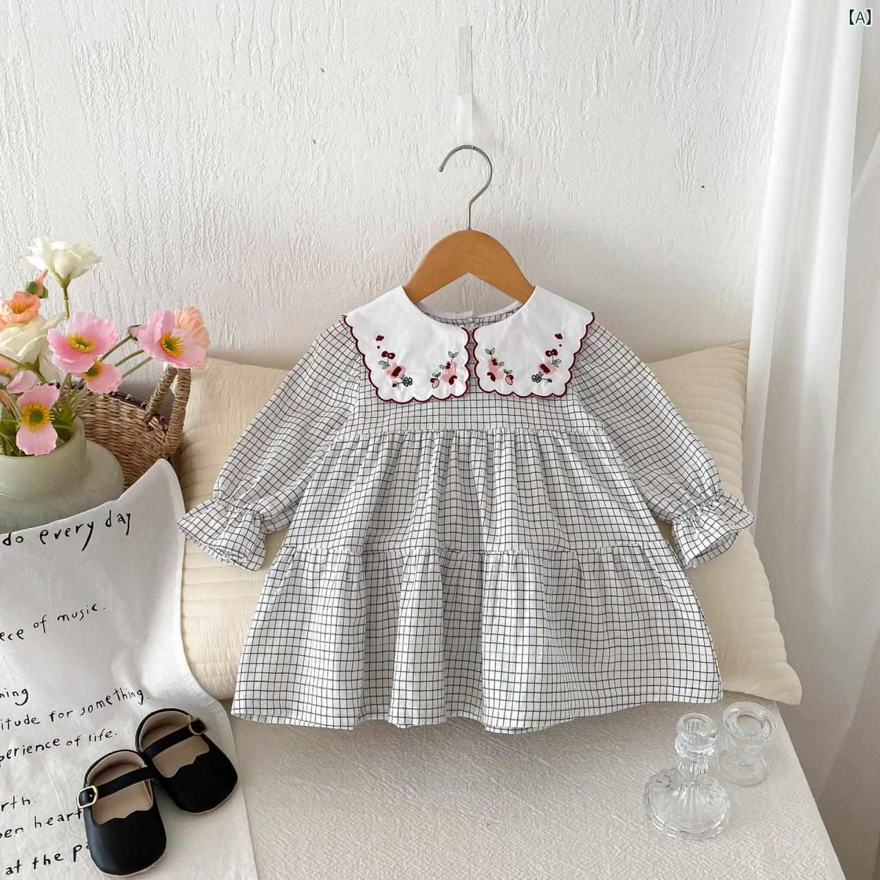 ワンピース 女の子 春秋 格子柄 花柄 刺繍 チュール かわいい キッズ 子供 プリンセス ベージュ 80cm 90cm 100cm 110cm 120cm 130cm