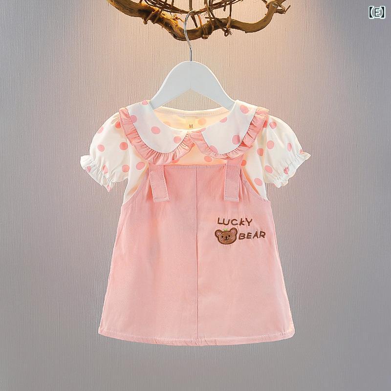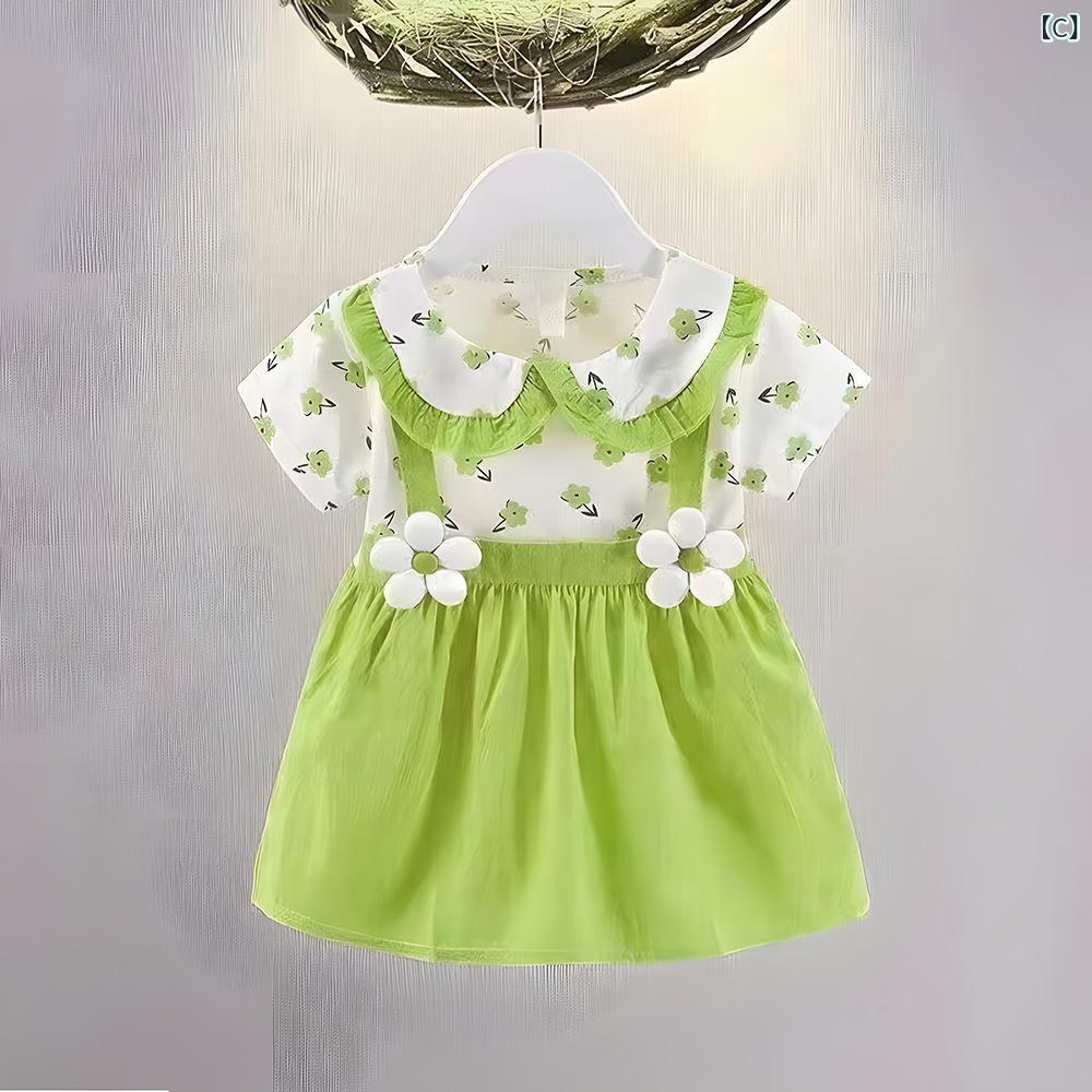 ワンピース キッズ ベビー ドール襟 かわいい 花柄 Aラインスカート 綿混紡 半袖 春夏 73CM 80cm 90cm 100cm