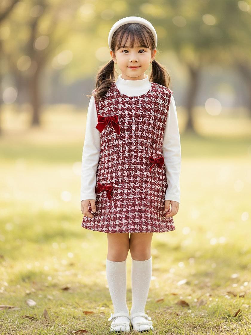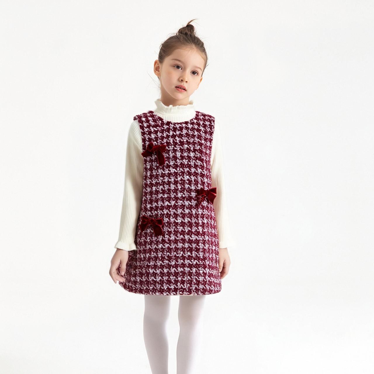 ワンピース キッズ 女の子 子供 小香風 チェック柄 ノースリーブワンピース チュールスカート裏地付き 秋冬 かわいい ガーリー