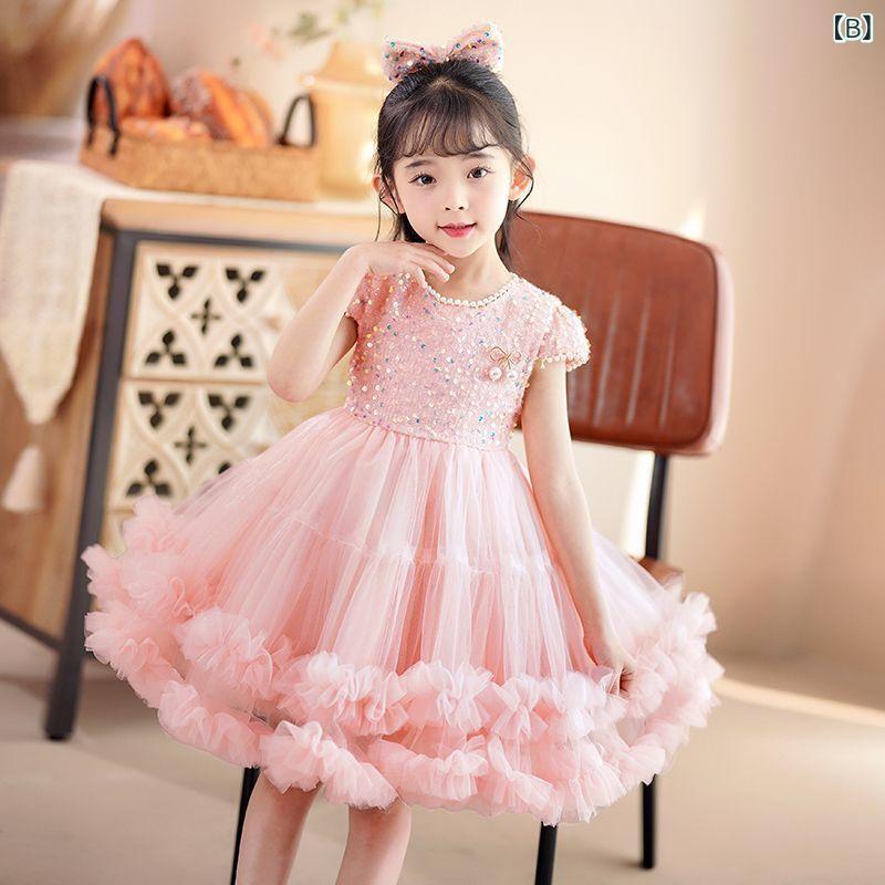 ワンピース 女の子 子供服 夏服 韓国風 Aライン ノースリーブ チュール レース プリンセスドレス フォーマル 発表会 結婚式 パーティー かわいい おしゃれ レッド ピンク ホワイト 90 100 110 120 130 140 150