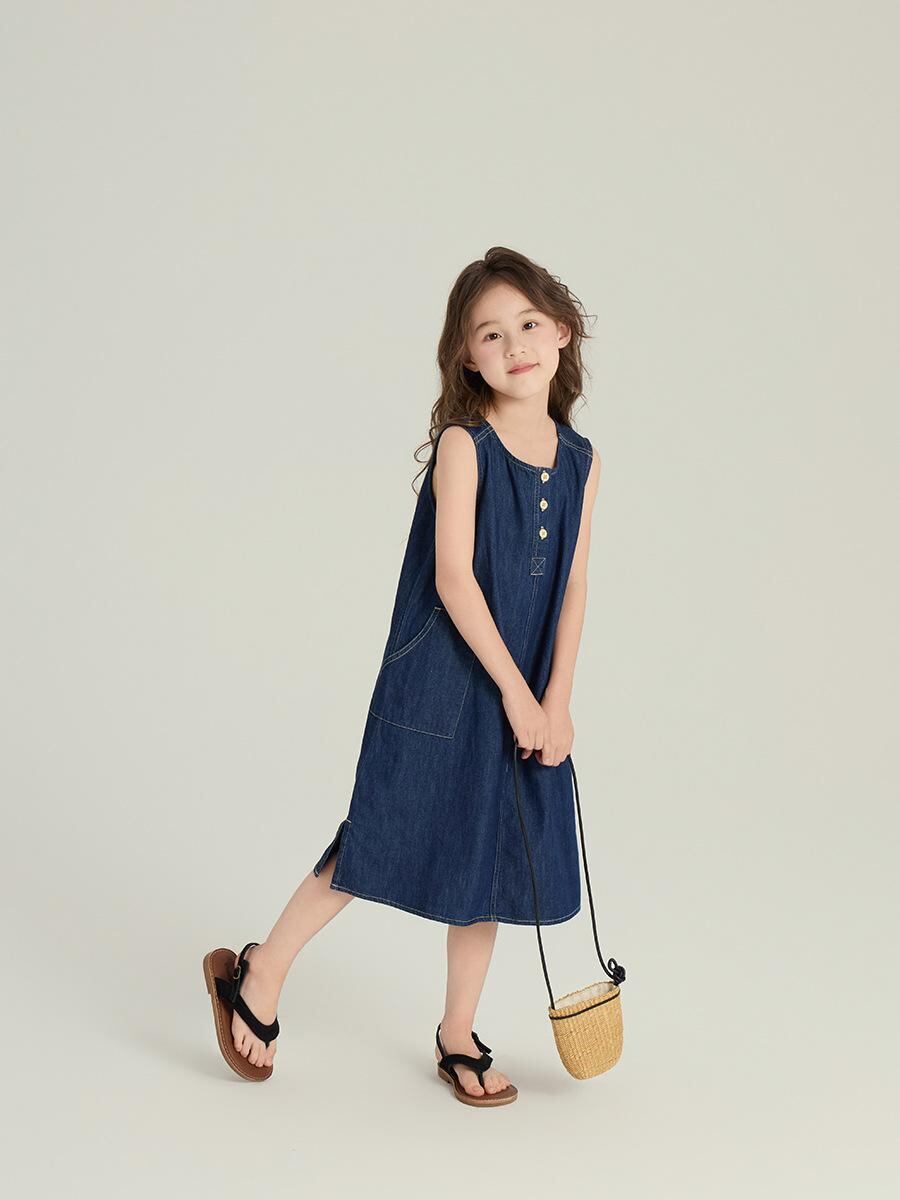 ワンピース キッズ 女の子 デニム Aライン 春夏 子供服 かわいい ノースリーブ 普段使い お出かけ 綿 接触冷感
