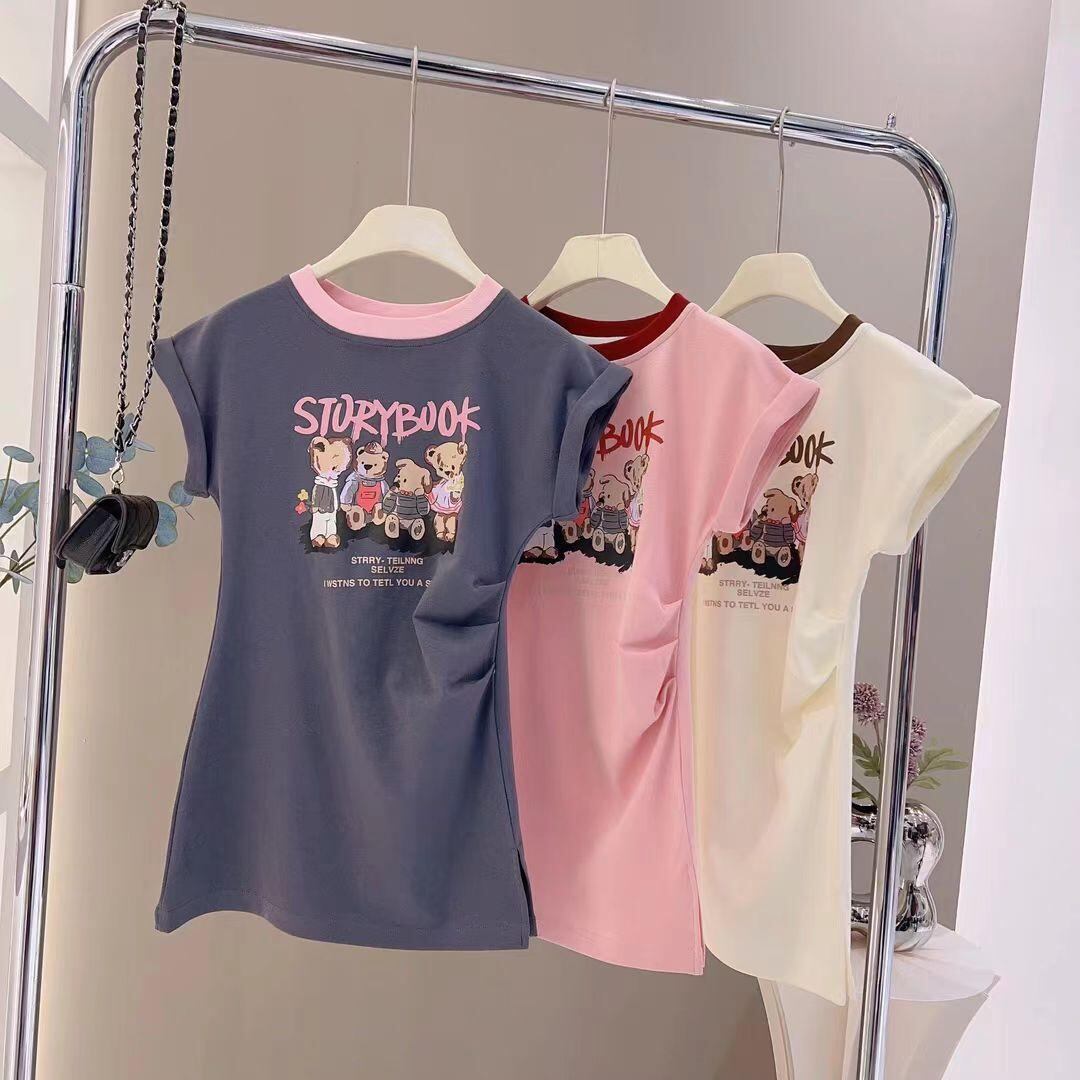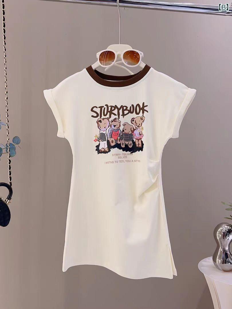 ワンピース キッズ 女の子 子供服 半袖 コットン Tシャツワンピース かわいい 百褶スカート 普段着 部屋着 ピンク系 グレー系 アイボリー 90cm 100cm 110cm 120cm 130cm 140cm 150cm 160cm