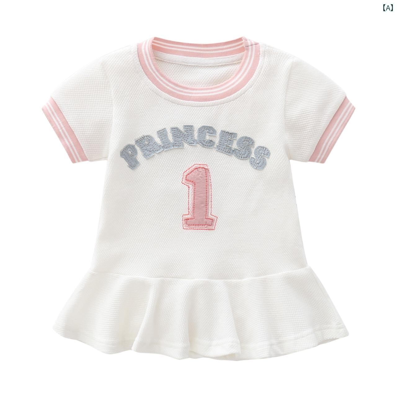 ワンピース 女児 ベビー 夏物 半袖 プリンセス 野球 スカート 幼児 子供服 かわいい 73 80 90 100 110 120 白