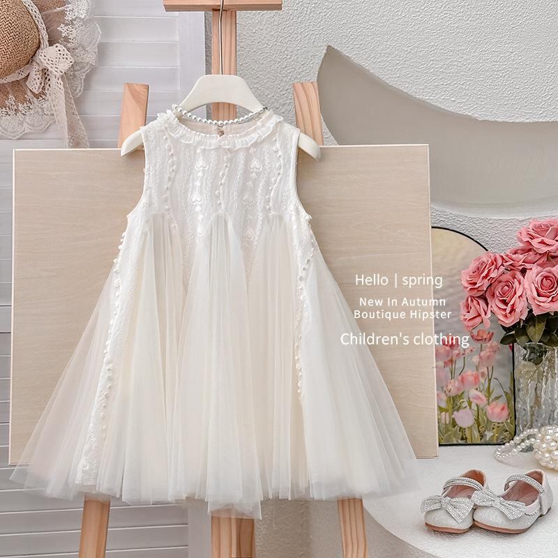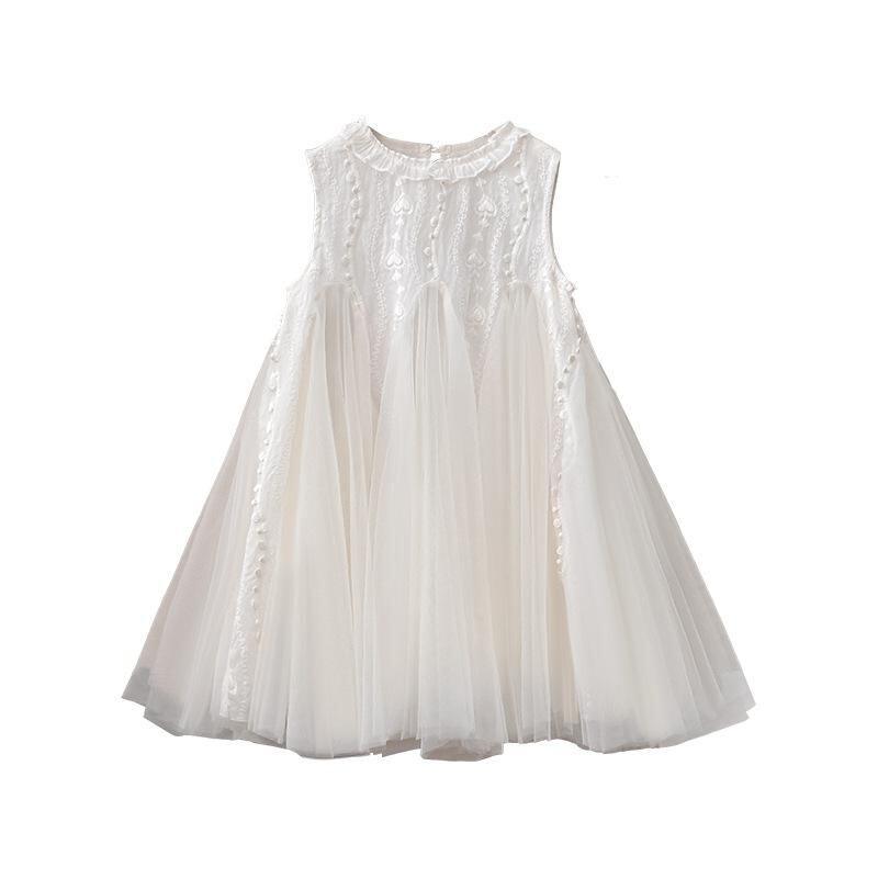 ワンピース キッズ 女の子 子供 ノースリーブ Aラインスカート コットン混紡 プリンセス ベージュ かわいい 発表会 結婚式 誕生日 フォーマル 夏