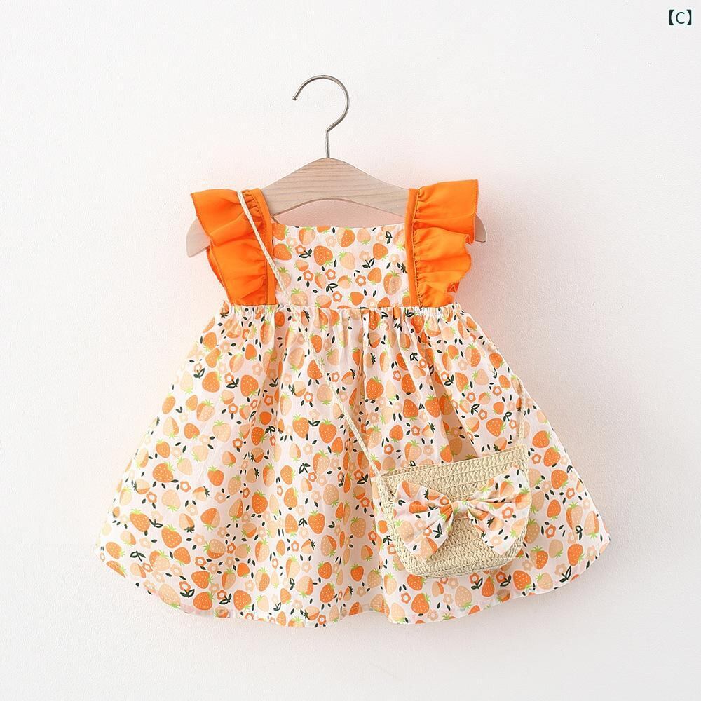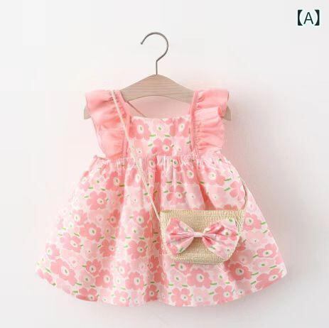 ワンピース キッズ 女の子 子供服 夏服 キャミソールワンピース Aライン 膝丈 綿 かわいい 幼児 ベビー 73CM 80cm 90cm 100cm ピンク イエロー オレンジ 花柄 イチゴ柄