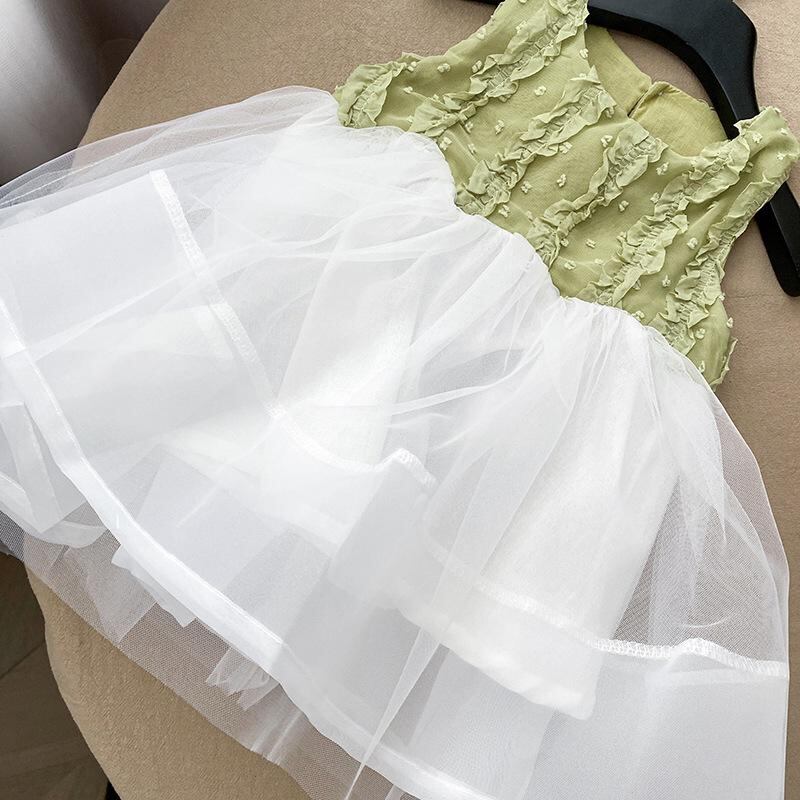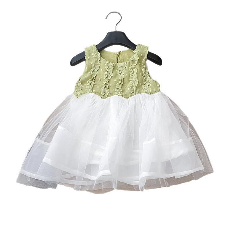 ワンピース キッズ 女の子 夏 プリンセス チュールスカート 快適 涼しい おしゃれ かわいい ノースリーブ Aライン グリーン 80 90 100 110 120 130