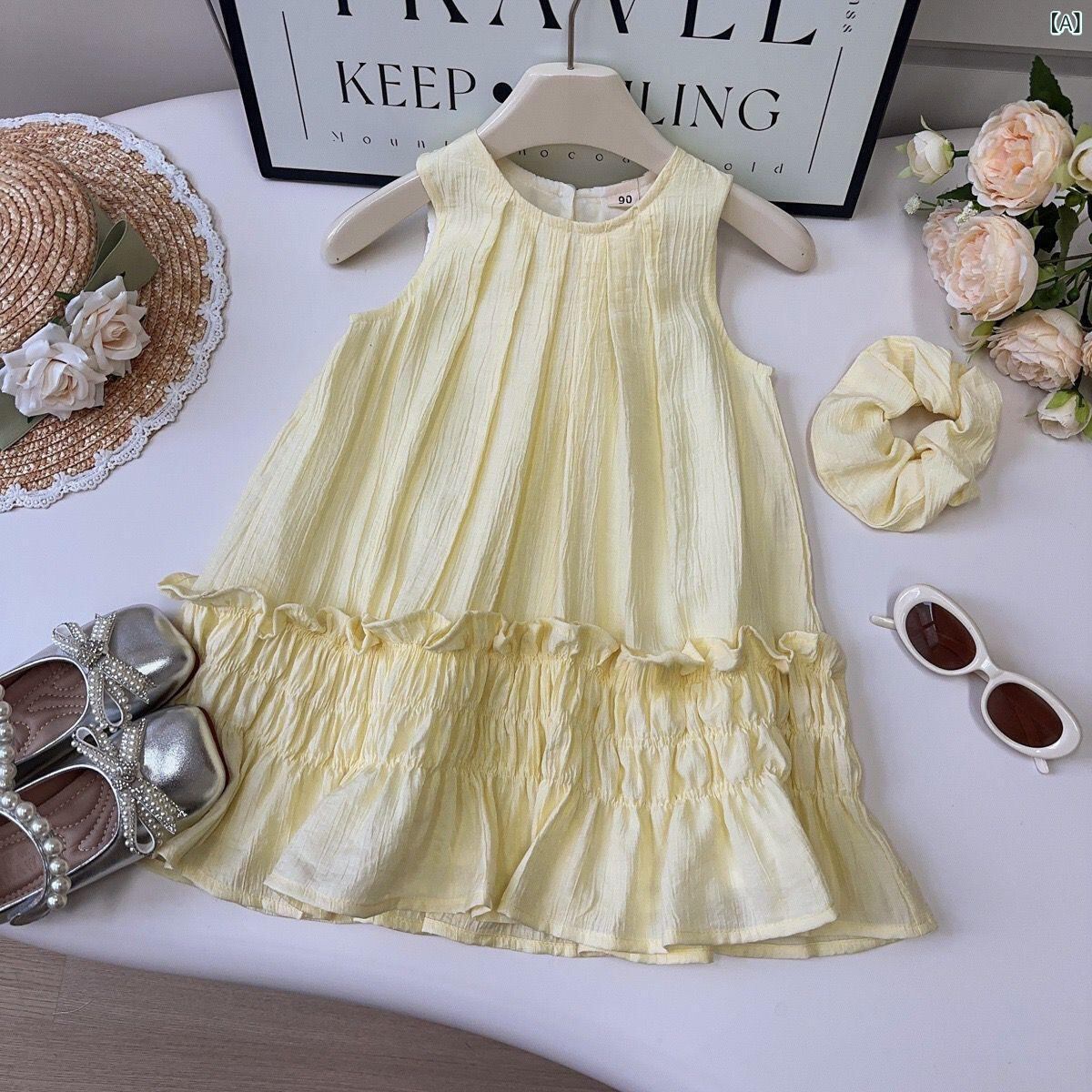 ワンピース 女の子 子供服 サマーワンピース ノースリーブ Aライン プリンセススタイル 粘纤 ポリエステル 裏地付き 綿 無地 90cm 100cm 110cm 120cm 130cm 140cm