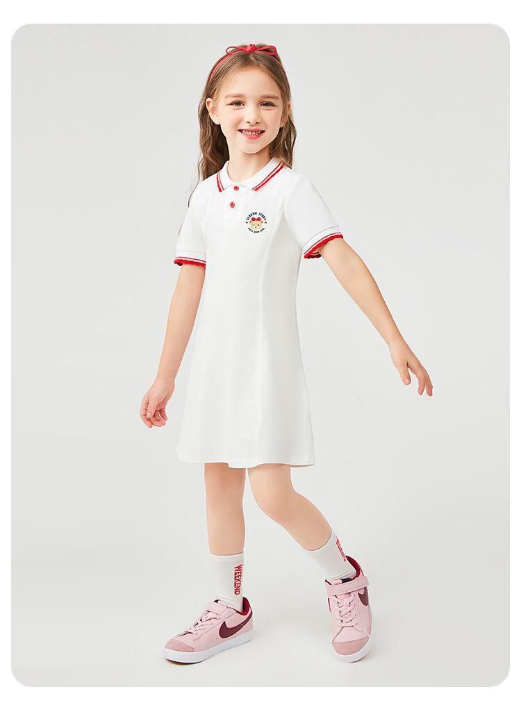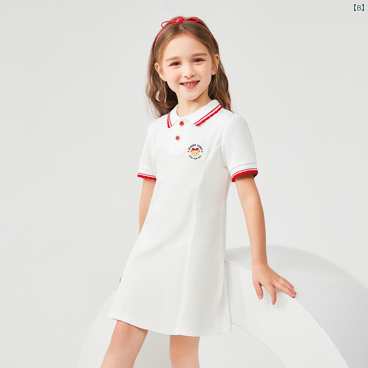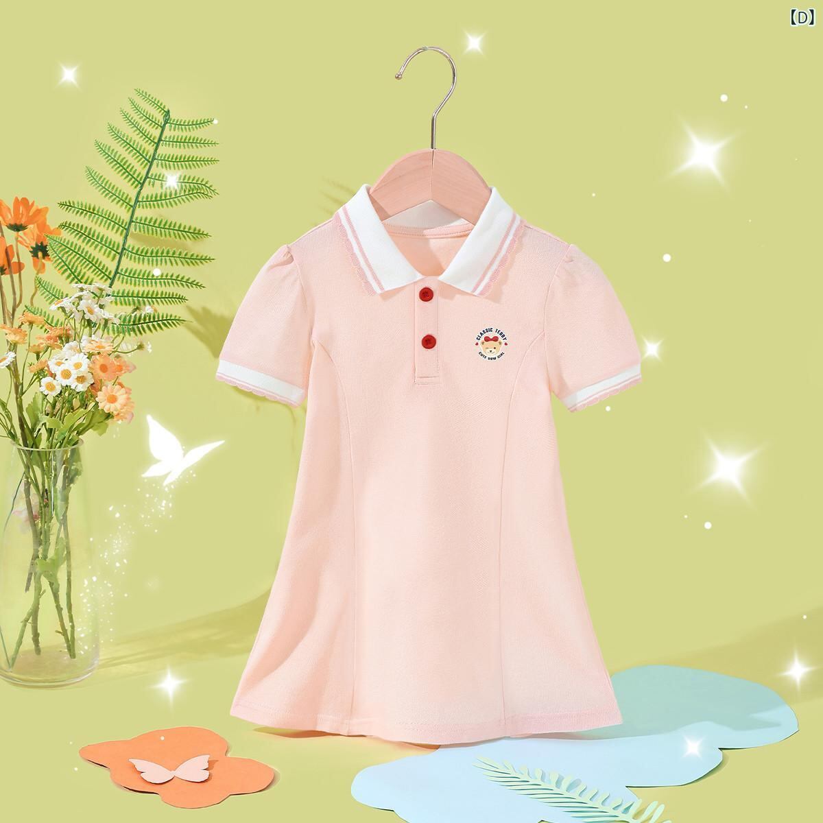 ワンピース 女の子 かわいい 半袖 Aライン 膝丈 夏物 子供服 ポロワンピース コットン混紡 薄手 通園 通学 普段使い アイスブルー ホワイト ミントグリーン ピンク