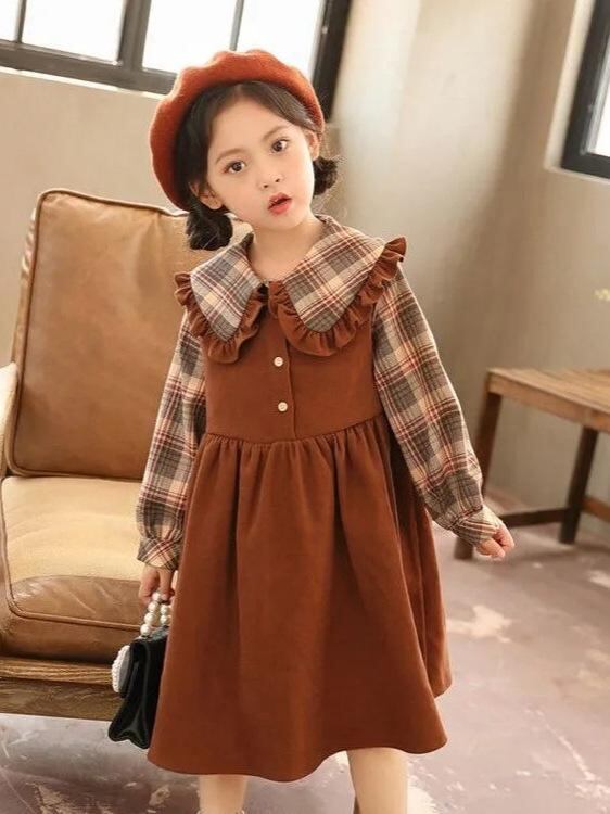 ワンピース キッズ 女の子 長袖 子供服 春秋 おしゃれ かわいい 切り替え 発表会 結婚式 フォーマル 普段着 通学着 110cm 120cm 130cm 140cm 150cm 160cm 170cm