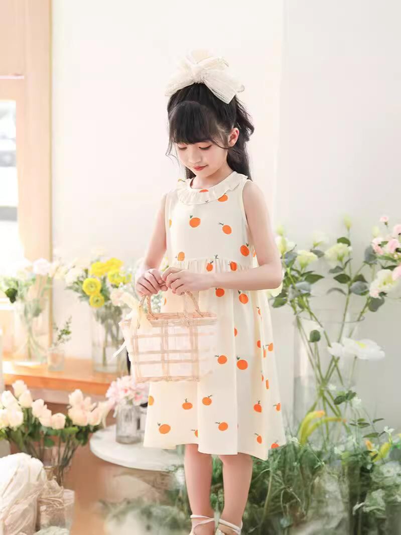 ワンピース 女の子 キッズ 夏 薄手 かわいい おしゃれ 韓国 子供服 ノースリーブ バブル クレープ プリンセス スカート 花柄 ドット柄 ポリエステル Aライン 100cm 110cm 120cm 130cm 140cm