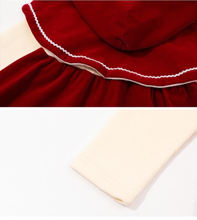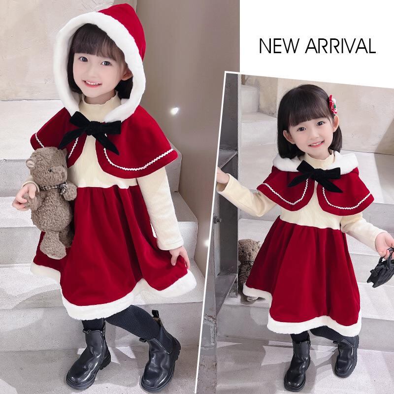 ワンピース 子供服 クリスマス ケープ 帽子付き 赤 女の子 ベルベット 厚手 かわいい パーティー イベント 秋冬