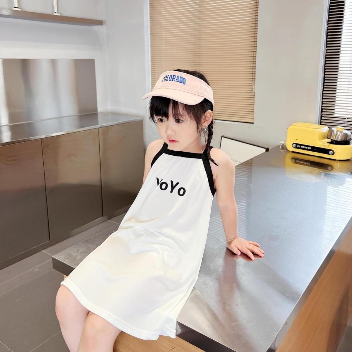 ワンピース キッズ 女の子 吊りスカート 子供服 接触冷感 プリンセスドレス Aライン かわいい 涼しい 寝巻き 部屋着 ポリエステル 春夏 赤 白 黒 紫 緑 桃色 花柄 チェリー いちご 猫 ウサギ バナナ レインボー アイスクリーム 90cm 10