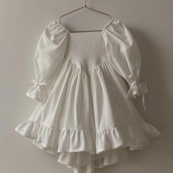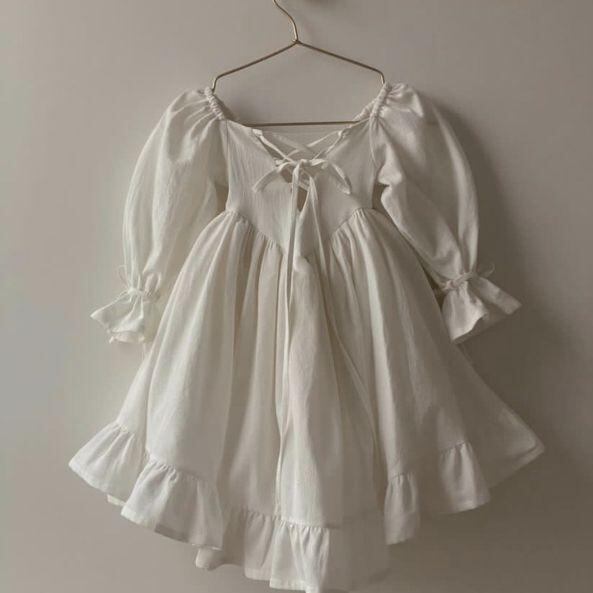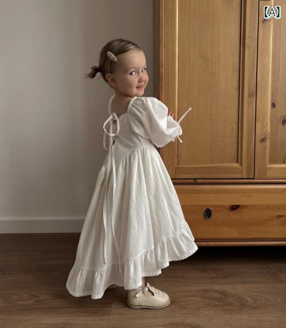 ワンピース 子供服 ロリータ Aライン 春秋 綿麻 長袖 杏色 白 かわいい 幼児 女の子 90 100 110 120 130