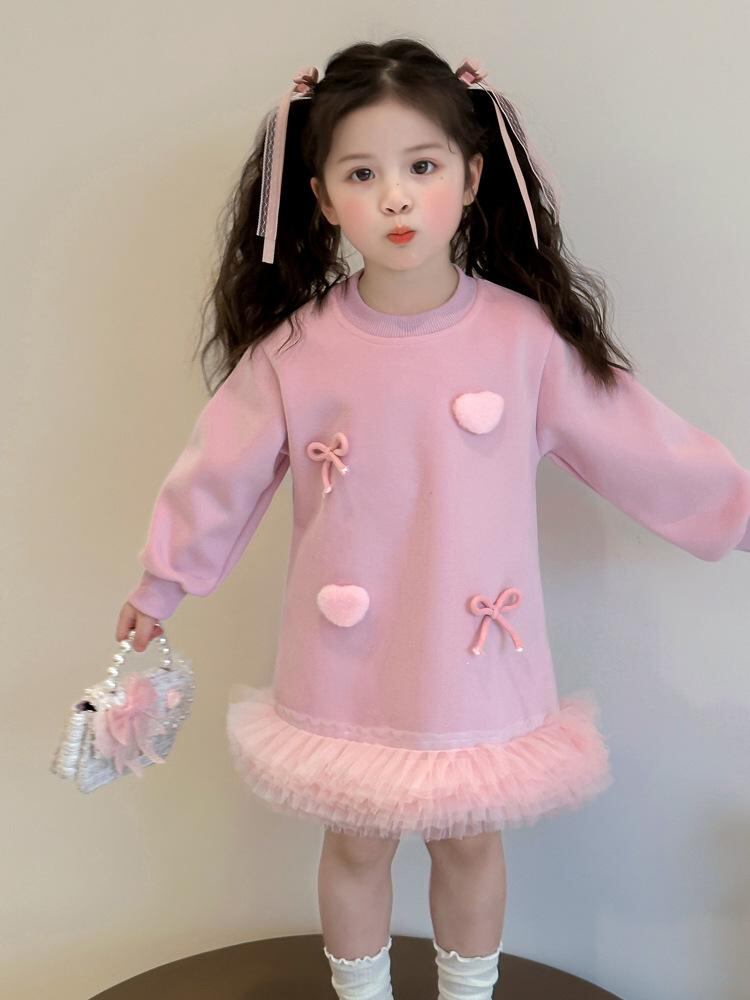 ワンピース 女の子 子供服 春秋 Aライン チュールスカート かわいい 姫系 おしゃれ キッズ ガールズ ピンク イエロー