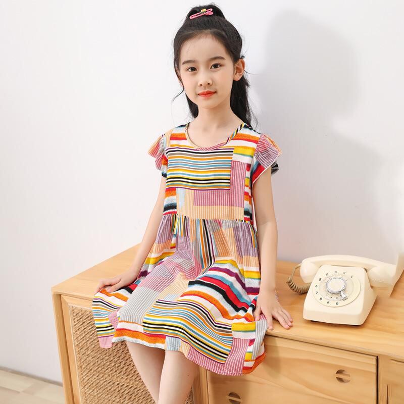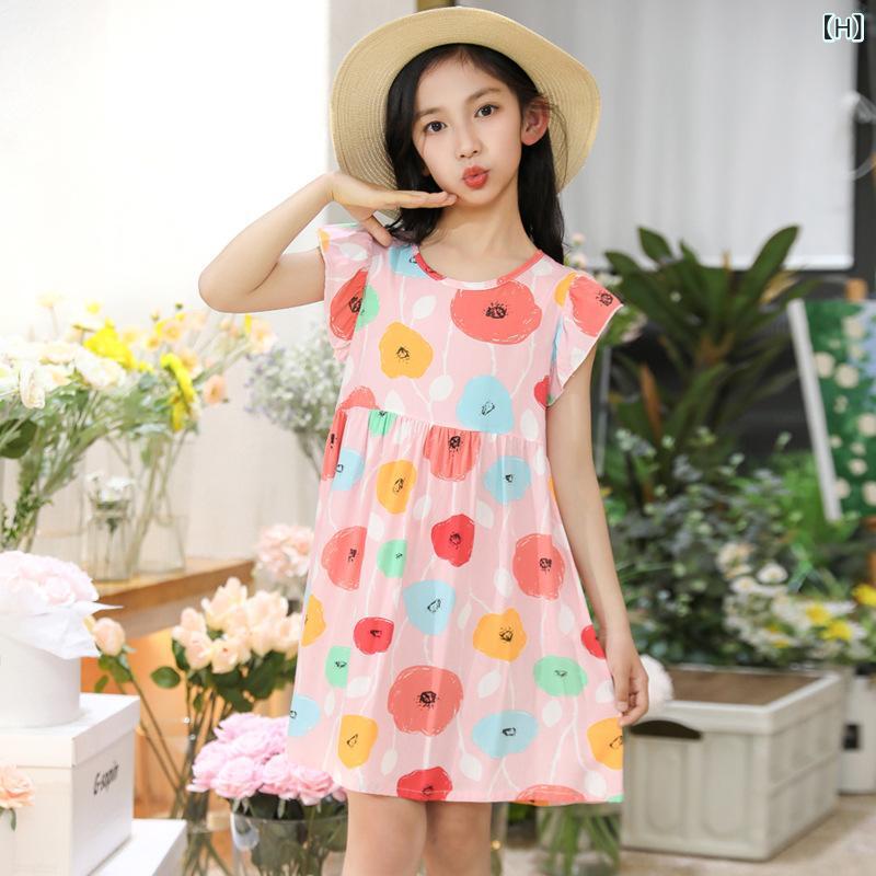 ワンピース キッズ 女の子 飛袖 Aライン 膝丈 接触冷感 再生繊維 花柄 100cm 110cm 120cm 130cm 140cm 150cm 160cm 170cm かわいい 普段使い 部屋着 リゾート