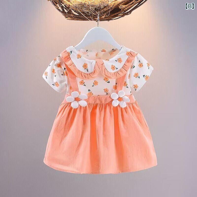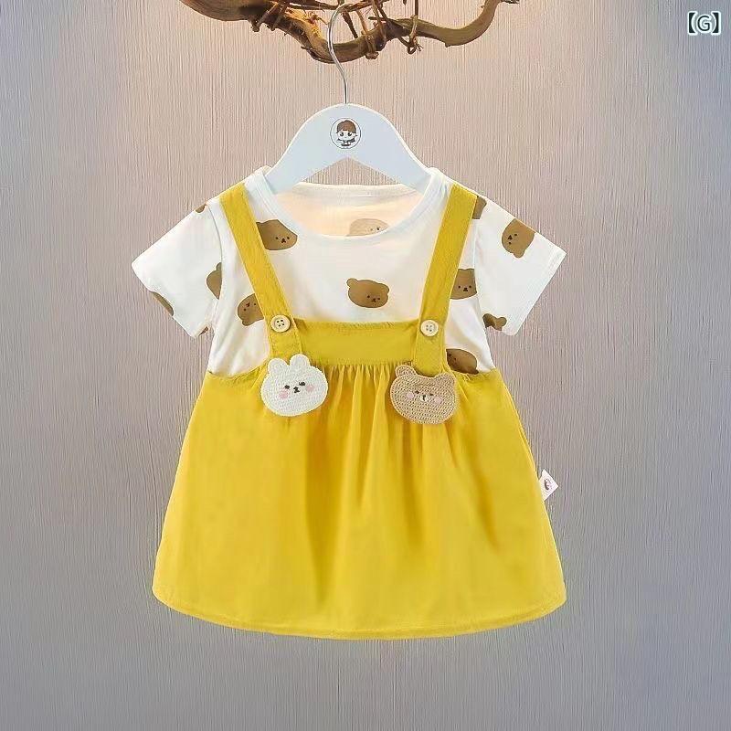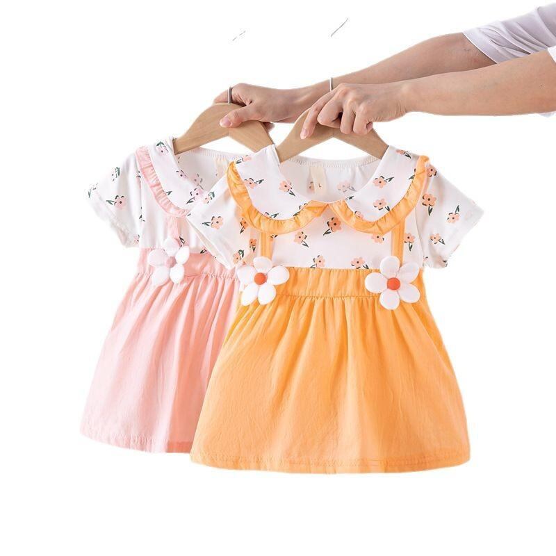 ワンピース 女児 ベビー 夏物 Aライン 花柄 ドット柄 アニマル柄 かわいい 吊りスカート コットン100% 幼児 1歳 2歳 3歳 ピンク系 オレンジ系 イエロー系 グリーン系 パープル
