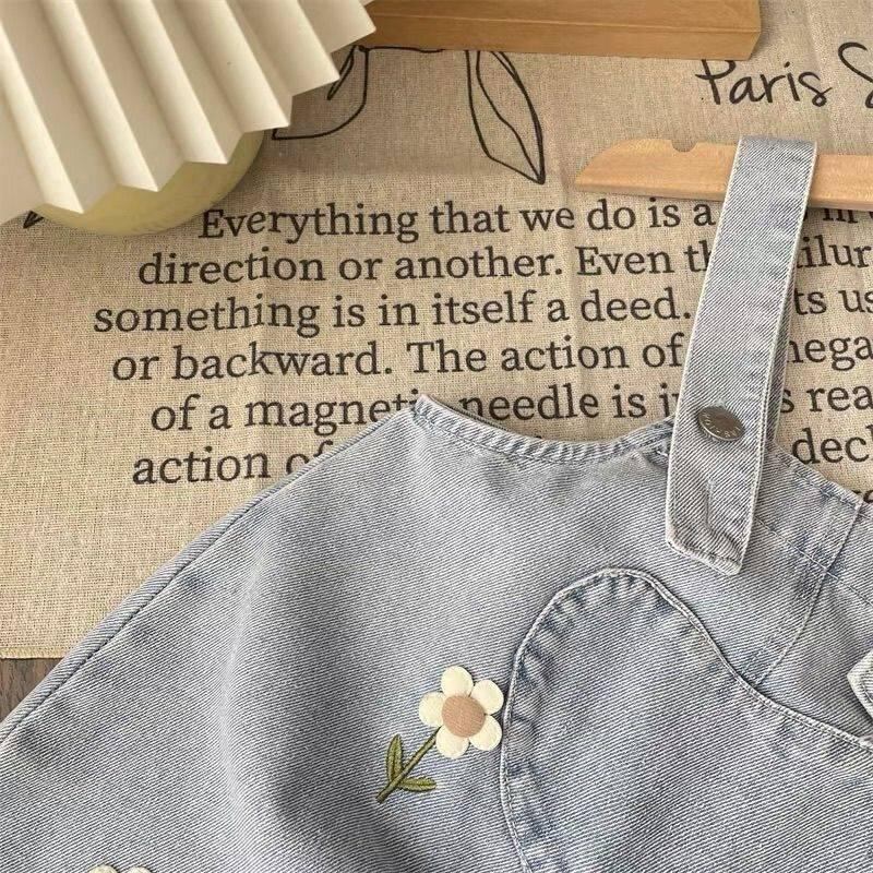 ワンピース 子供服 女の子 花柄 刺繍 デニム 背当て サスペンダー 春秋 8歳以上 中大童 かわいい 80 90 100 110 120 130