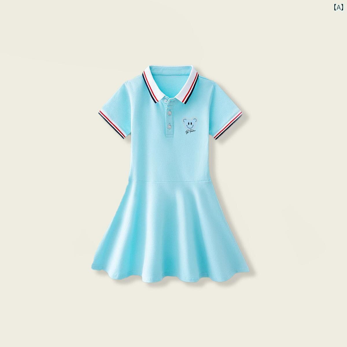 ワンピース 子供服 女の子 夏服 プリンセス 中大童 ポロワンピース 学院風 コットン かわいい 膝丈ワンピース 半袖 薄手 Aライン フレアスカート おしゃれ ガーリー カジュアル