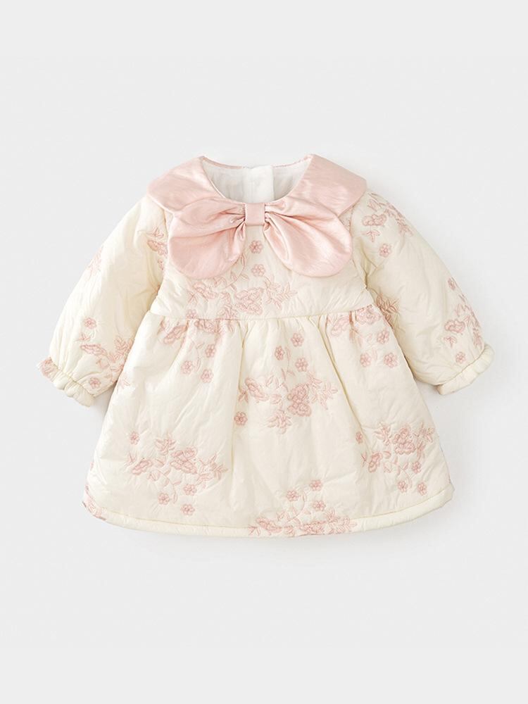 ワンピース ベビー キッズ 秋冬 裏起毛 厚手 暖かい 防寒 お出かけ着 コットン 女の子 1歳 2歳 3歳 プリンセス 花柄