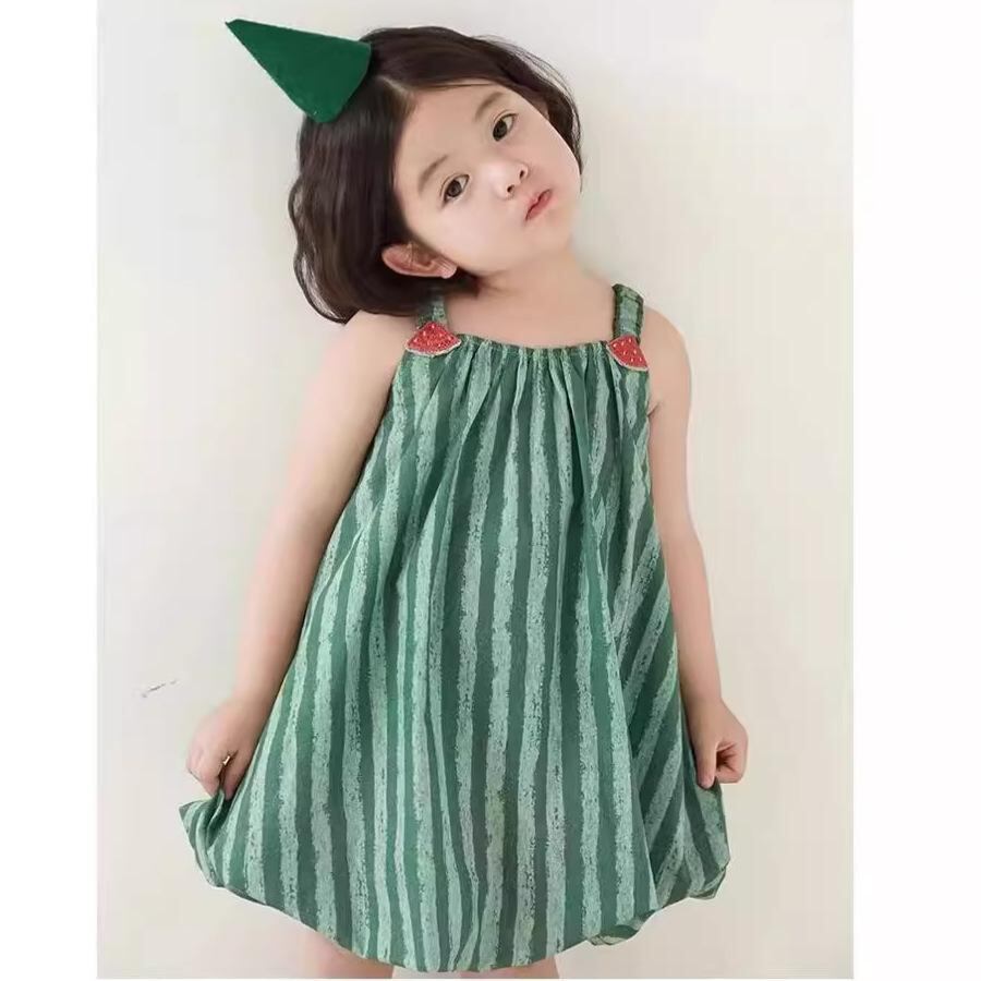 ワンピース 女の子 夏物 かわいい 森ガール ストライプ 花柄 ノースリーブ B類 コットン 100 110 120 130cm 吊りスカート ベビー キッズ 子供 幼児 女児