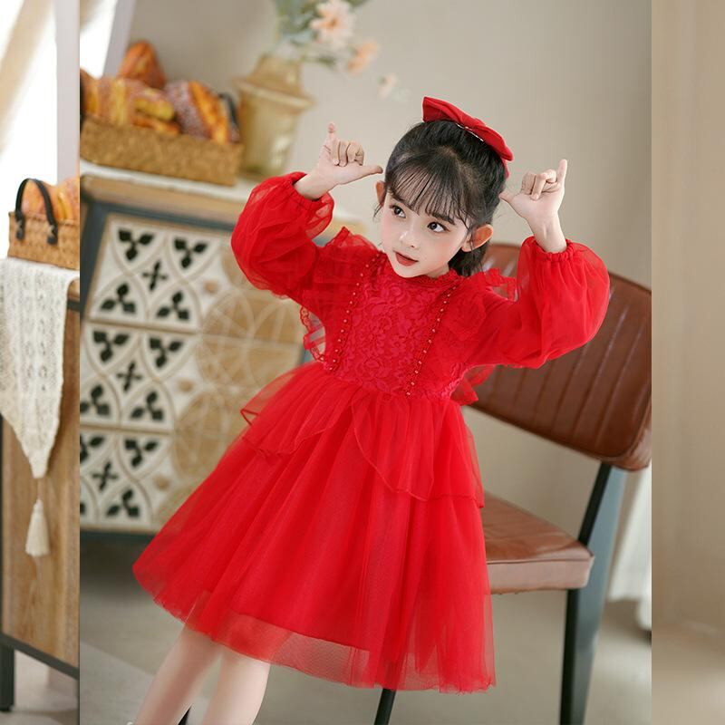 ワンピース 女の子 子供 レース プリンセスドレス チュール フォーマル 発表会 結婚式 演奏会 春秋 冬 80%ポリエステル
