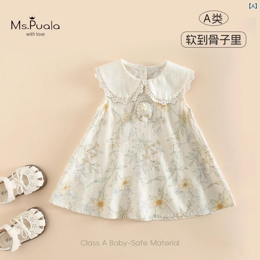 ワンピース ベビー キッズ 子供服 女の子 ノースリーブ レース 花柄 コットン チュニック Aライン 春夏 かわいい 快適 杏色