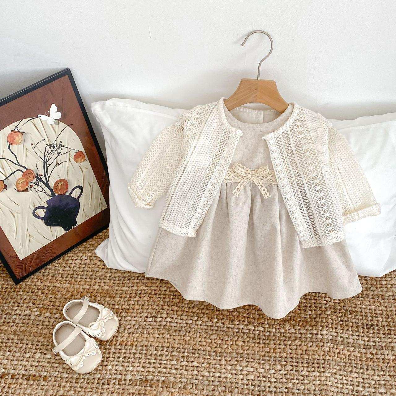 ワンピース 女の子 ベビー 撞色 フリル袖 Aライン チュニックワンピース かわいい おしゃれ 亜麻混 夏 70 80 90 100