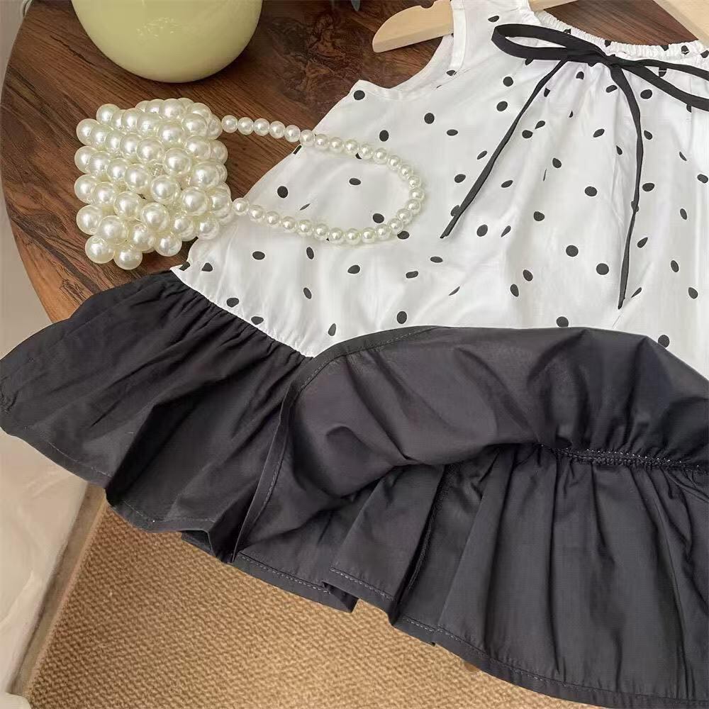 ワンピース 子供服 女の子 ノースリーブ Aライン 水玉模様 切り替え 接触冷感 3歳 4歳 5歳 6歳 7歳 8歳 かわいい