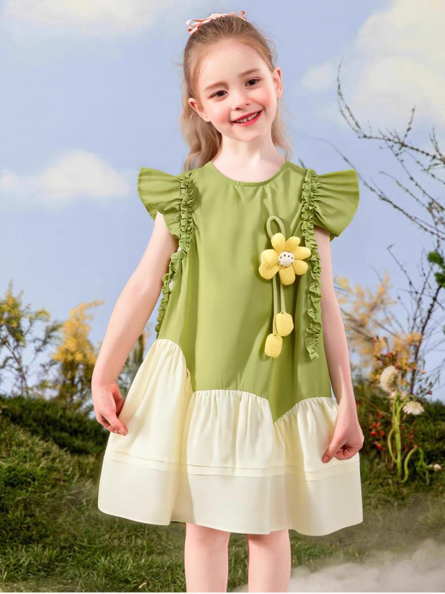 ワンピース 女の子 小童 ノースリーブ コットン Aライン 太陽花 かわいい 夏 春夏 8歳以上