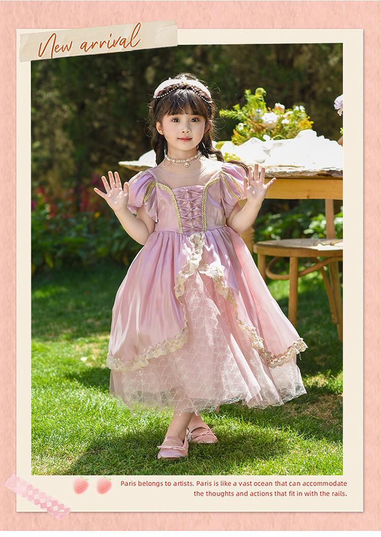 子供用ワンピース 女の子 半袖 プリンセスドレス パフスリーブ 礼服 ロリータ 宮廷風 春秋 かわいい コットン 100 110 120 130 140 150