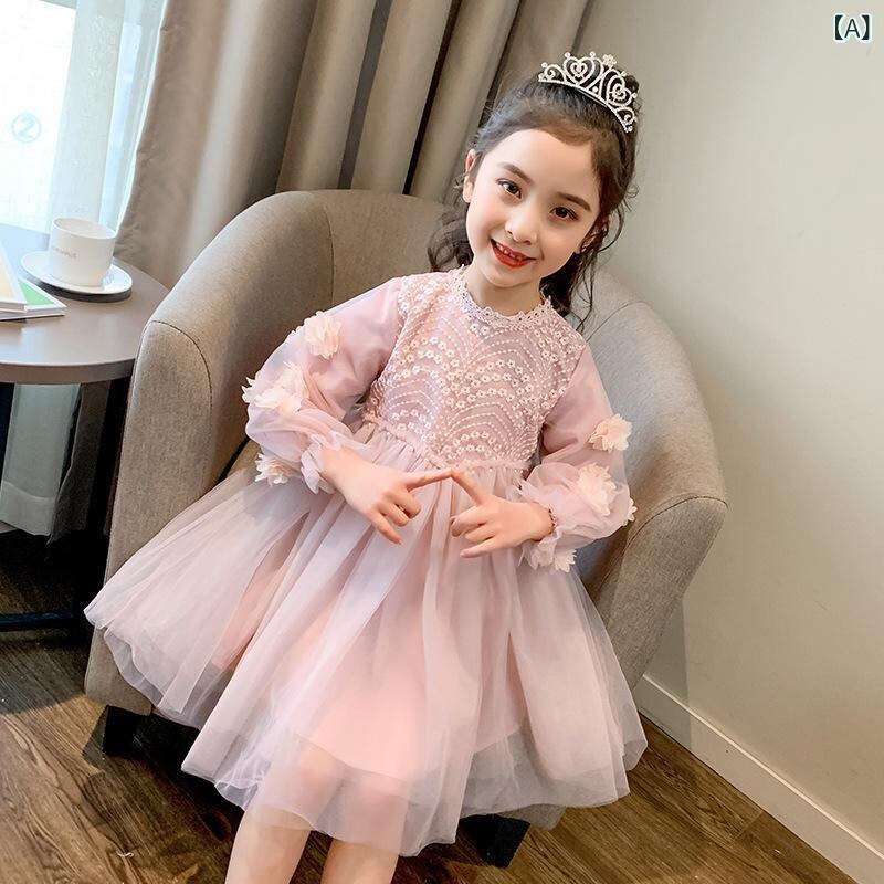 ワンピース 子供服 女の子 プリンセスドレス チュールスカート 長袖 無地 かわいい 春秋 B類 コットン