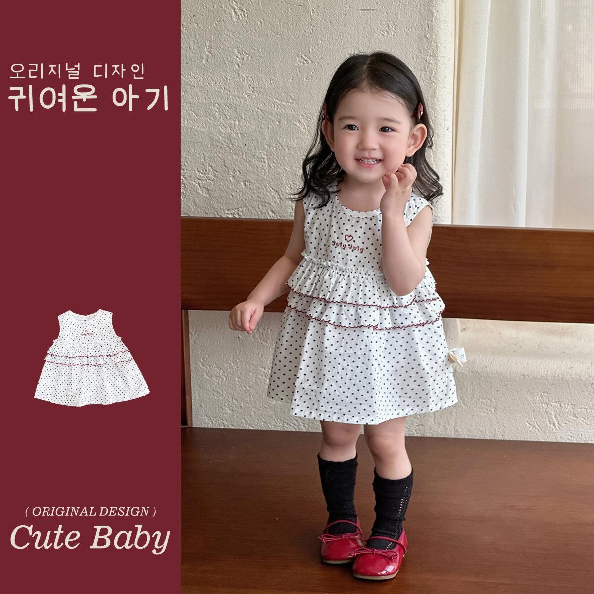 ワンピース ベビー ドット柄 花柄 フリル ノースリーブ Aライン 幼児 女の子 かわいい コットン 柔らかい 夏 白 73cm 80cm 90cm 100cm