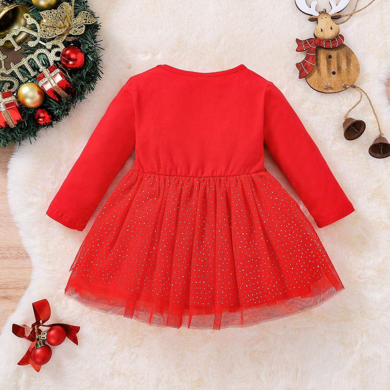 ワンピース ベビー 女児 クリスマス 長袖 かわいい チュール プリンセス スカート 赤ちゃん 幼児 普段着 パーティー お呼ばれ 結婚式 誕生日 発表会 イベント 写真撮影 春秋 綿