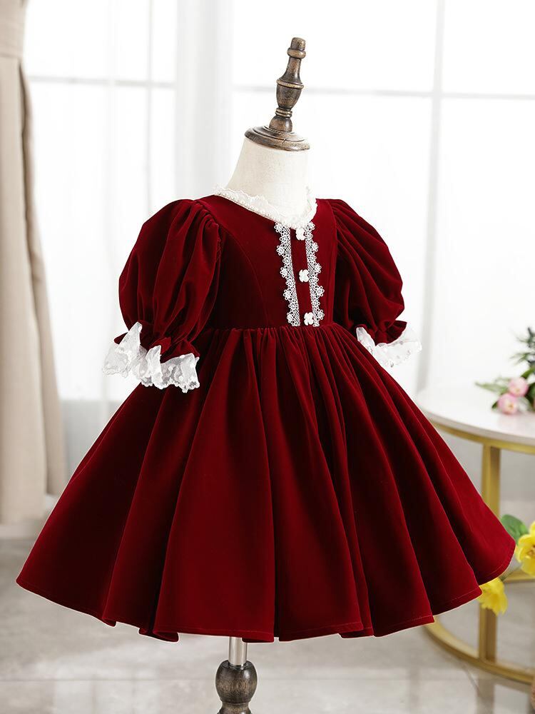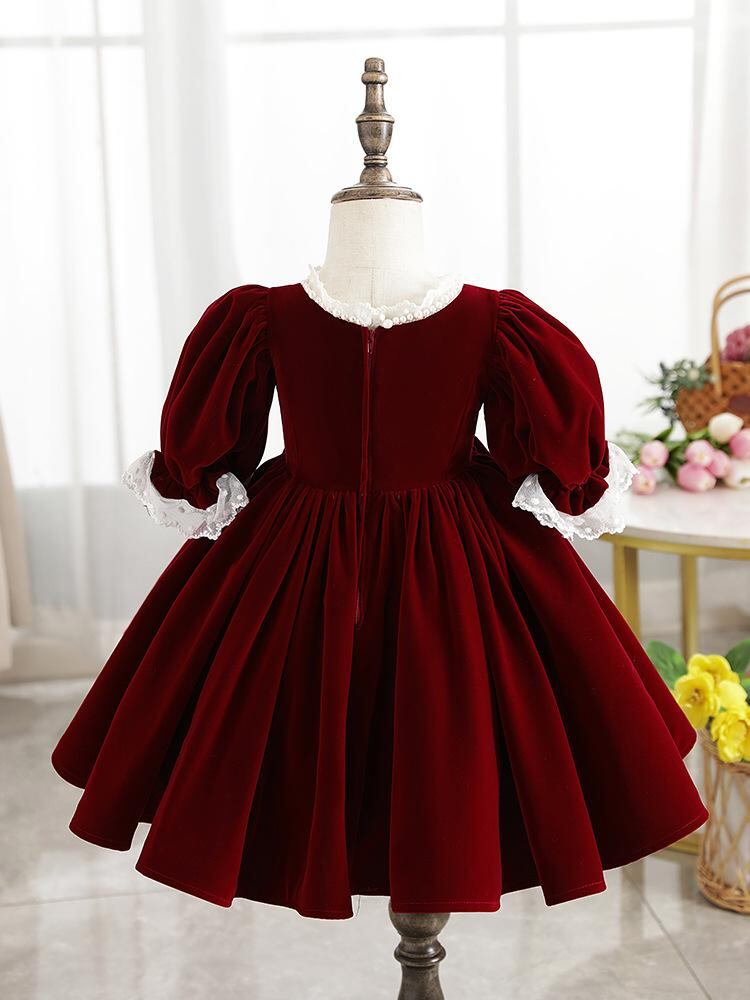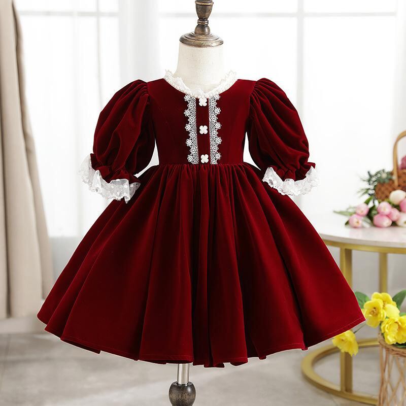 ワンピース キッズ 女の子 子供 秋冬 韓国絨 ロリータ ワインレッド Aライン 発表会 結婚式 パーティー フォーマル かわいい チュール 100 110 120 130 140 150